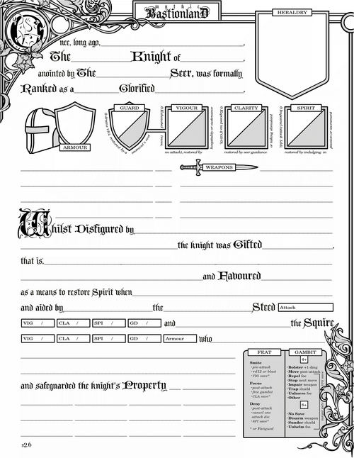 Templates and Tables for Mythic Bastionland